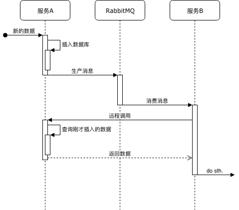 服务 A 在从外界接收到推送的一条数据后,将数据插入到库里,然后通过 MQ 推送一条消息给 服务 B,服务 B 会根据收到的消息进行一些处理,其中包括远程调用 服务 A 的方法去查询这条数据,但是在测试环境总是报查询不到这条数据。
