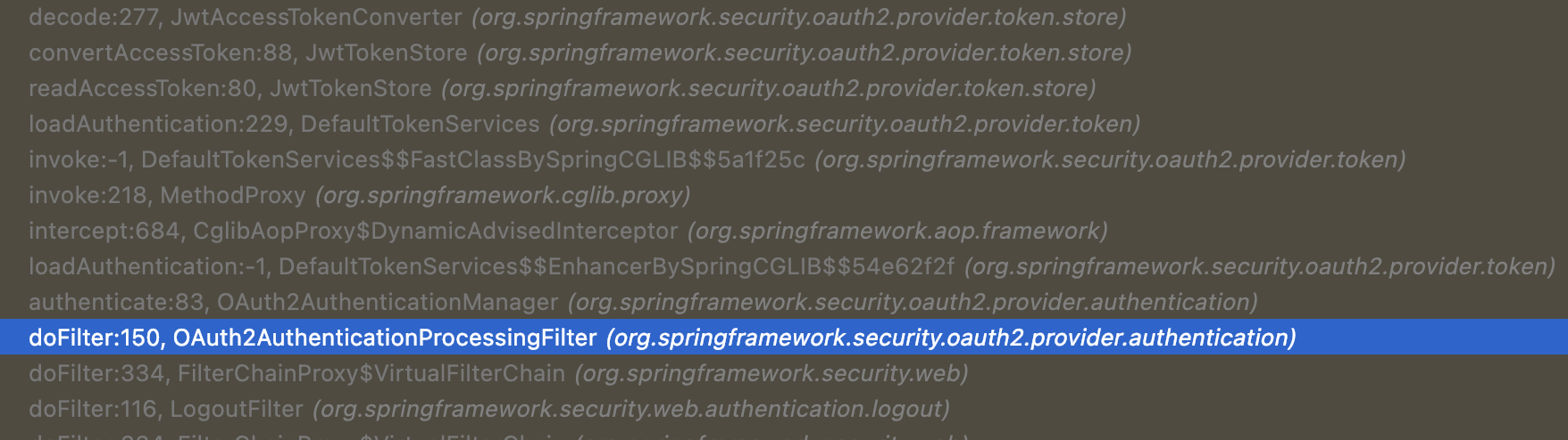 @Pointcut("execution(* org.springframework.security.oauth2.provider.authentication.OAuth2AuthenticationProcessingFilter.doFilter(..))")