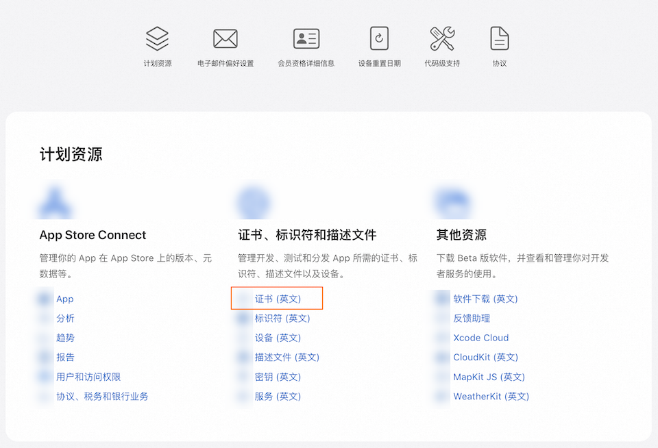 - 访问 https://developer.apple.com/cn/,使用 App 对应的 iOS 开发者账号登录;